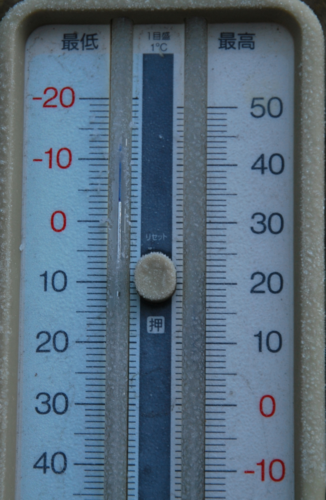 温度計の片面が雪で覆われて放射冷却が抑えられたかも
