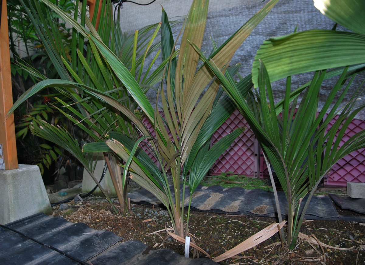 冬の水やりはなるべくヤシの頭上からではなく株元にあげるようにしたいところ