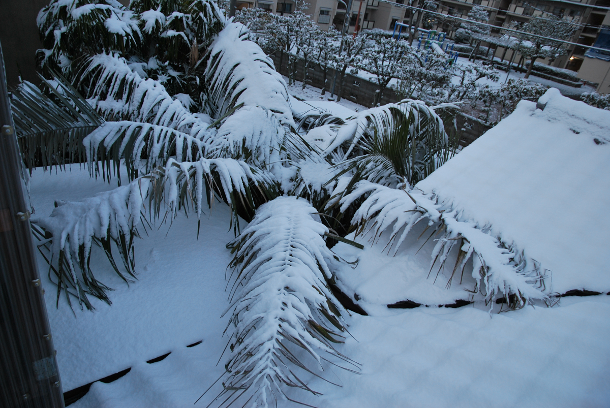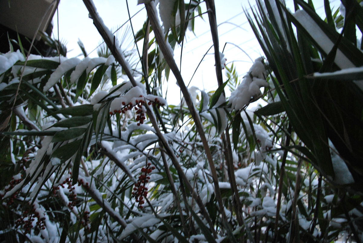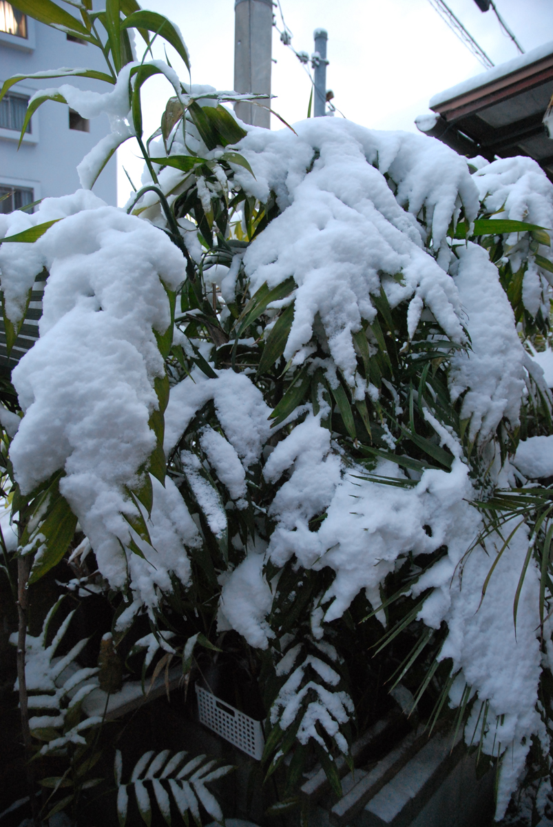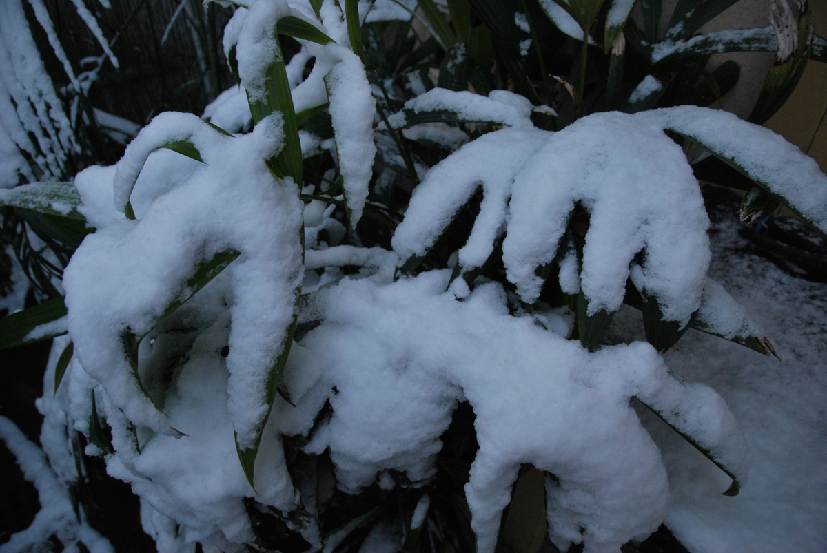 屋根からの落雪に耐えました 下葉は前から折れてたっぽい