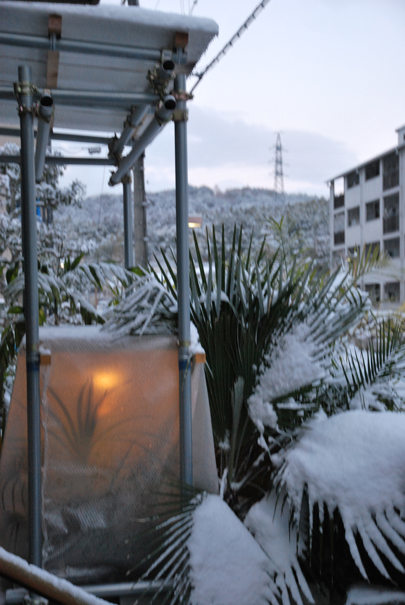 これから気温が上がるようですが、雪が残っている間は終日保温ハロゲン点灯します