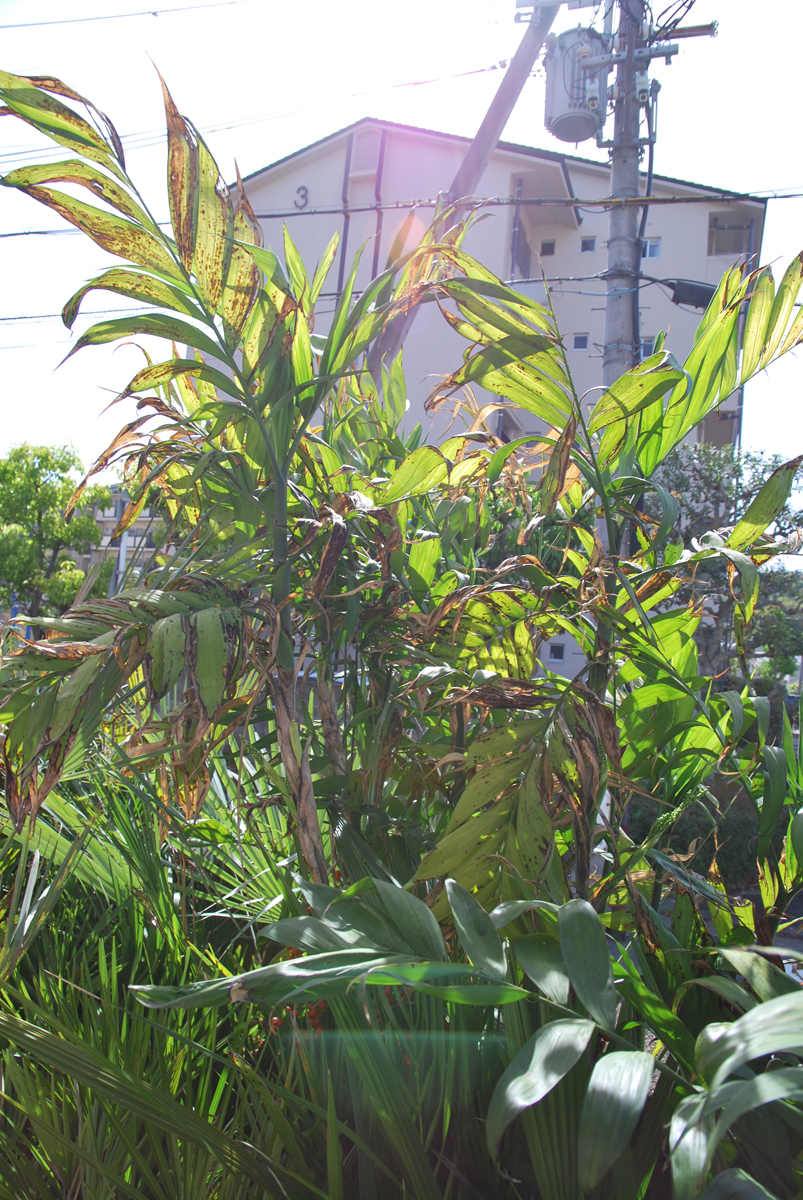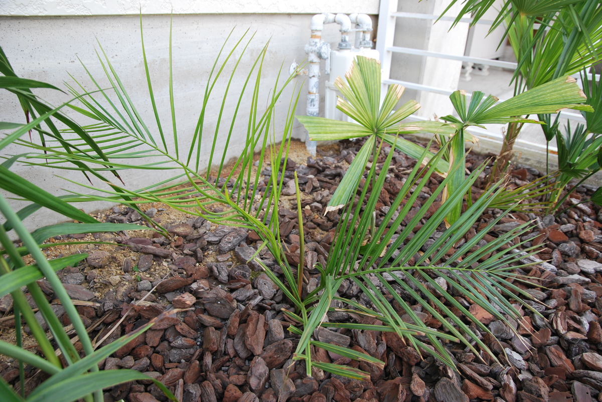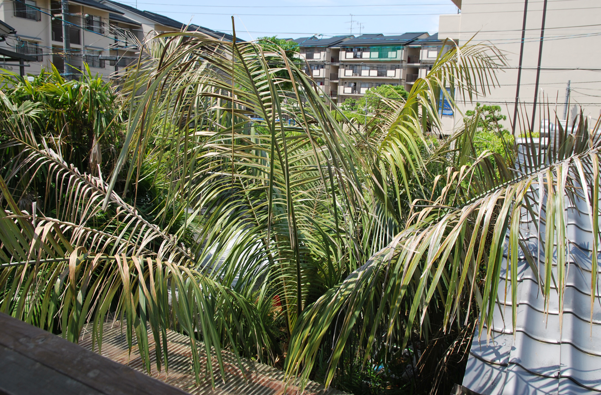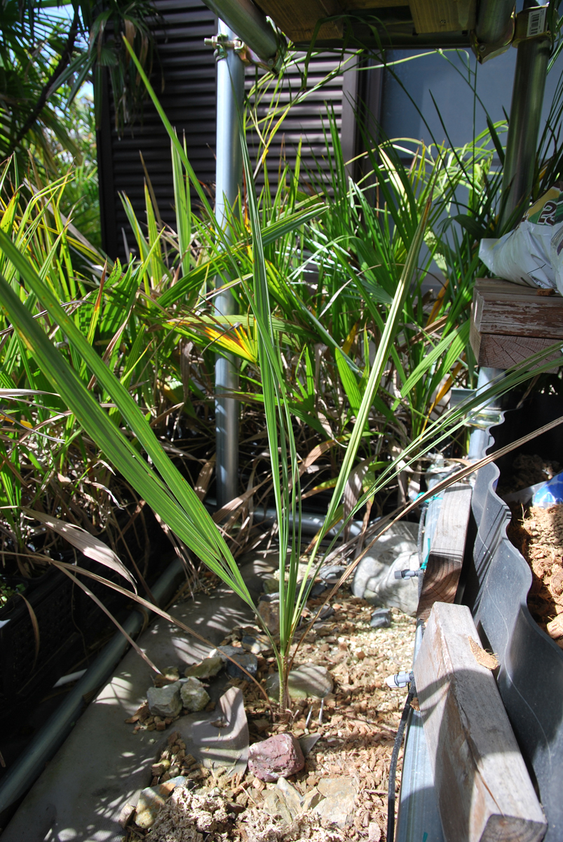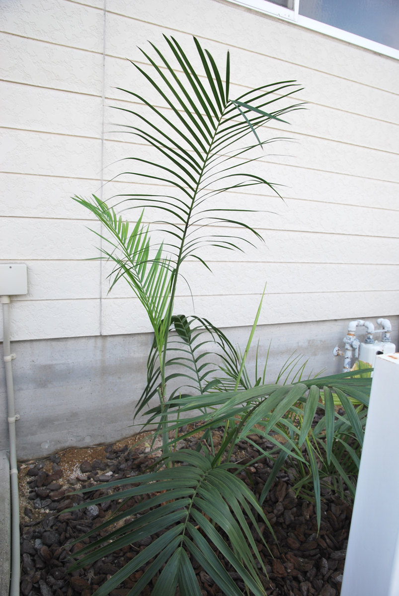 ご厚意で地植えさせて頂いていますお隣さんの花壇のヤシを紹介します