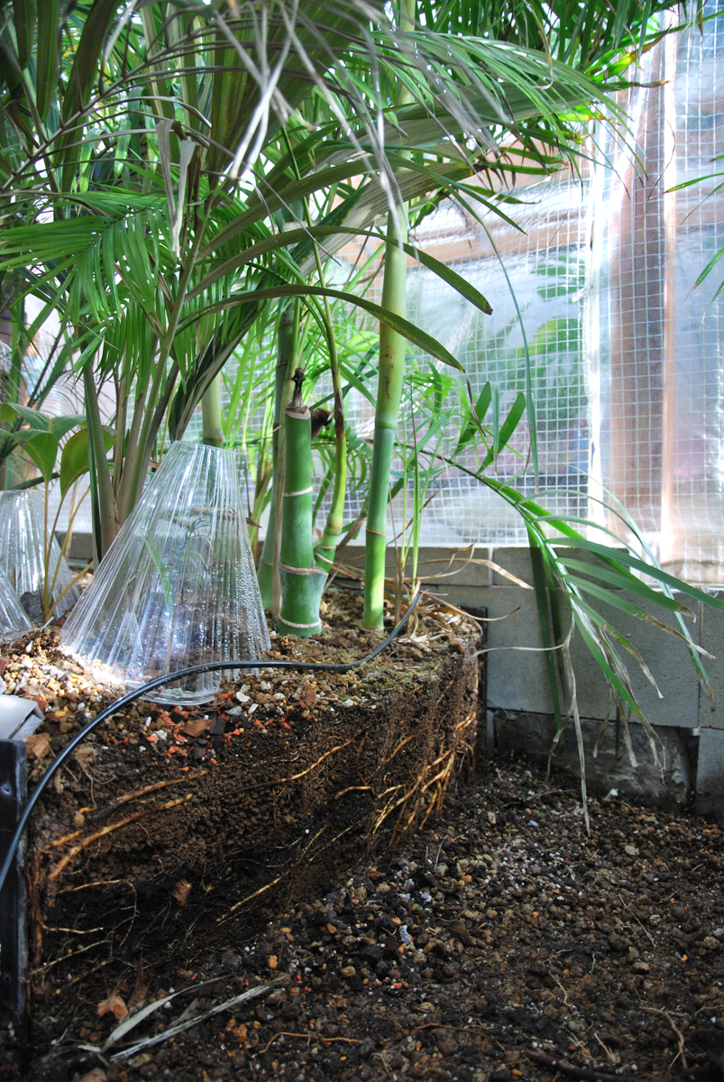 高温が苦手で湿度の好きなヤシの苗にとって好都合ではあります。