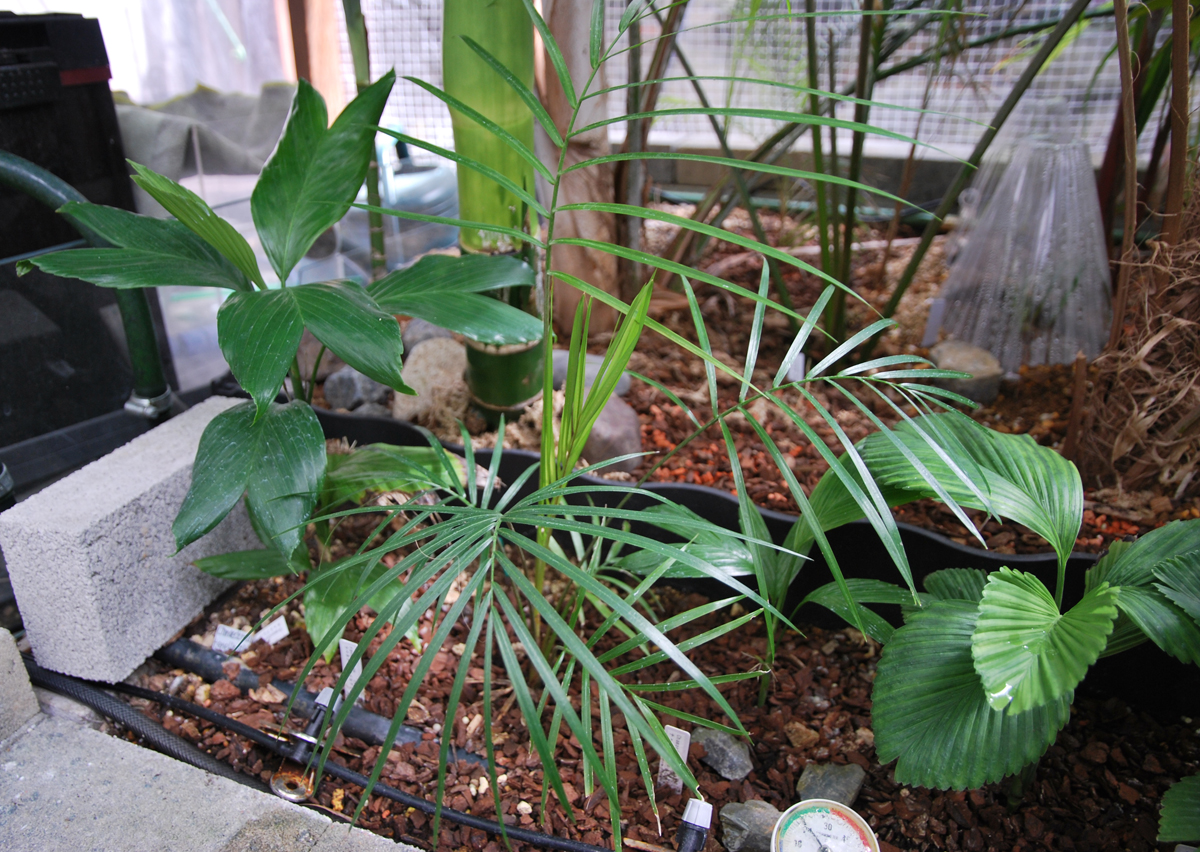 ウォーキングスティックパーム | 9b | 3 | 冬-温室内ミニ温室 加温水槽 木陰 |