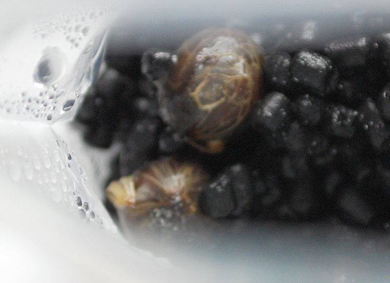 活性炭の保水性は良好でこんな量でもしっかり水滴がみえます