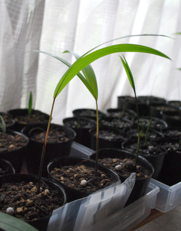 前回鉢上げしたドワーフアサイーは葉が出ました