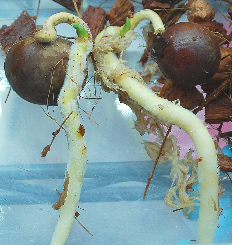 2017/7/28 種まき Ravenea glauca 'Andringitra' ラべニアグラウカ アンドリンギトラ 蒔いてからここまでわずか10日。既に発根準備段階だったのか非常に早い。 到着時半分くらいの種がお亡くなりになってたのは、もしかすると 発根中の種が輸送中に乾燥してしまってたからなのだろうか。 根毛の深い根はチャメドレアラディカリスっぽい。 ココチップ+水苔を使用 根に水苔が張り付いていたのでを剥がしたら根毛がハゲてしまった。