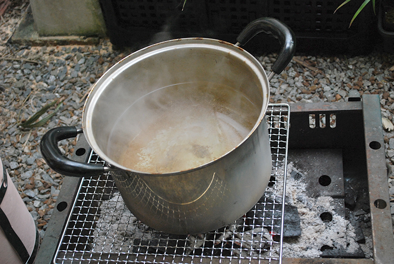 練炭のストックが無くなったので木炭に切り替えてBBQコンロを使用。木炭の匂いに癒されます。