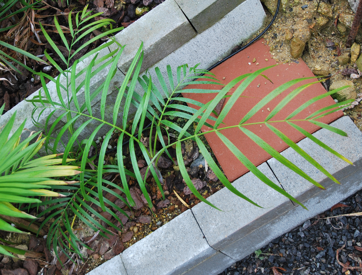 ニューカレドニアに自生する細身の美しいヤシ 赤茶けた深いオリーブグリーンに育ち見事でした