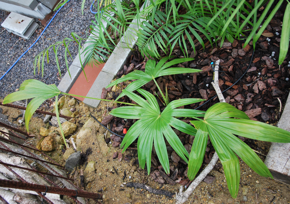 今後遮光シート下で地植えしているオニラヒパームと比較してみよう