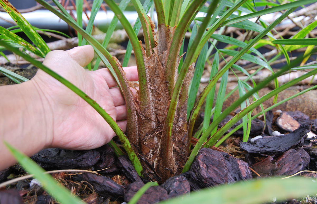 気温が下がってアンドリンギトラパームの成長が加速 奥のアンドリンギトラパームと次第に違った見た目になってきた