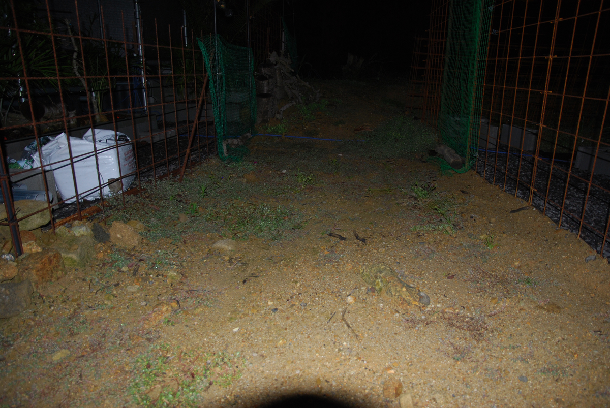 電気柵内にも芝を張るつもりで、アガベを上へ移植し、芝が上まで来ないように石を寄せて芝を張る部分を耕しました