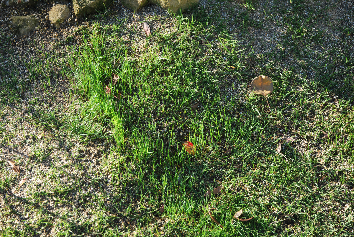 冬芝はぽつりぽつり発芽している様子