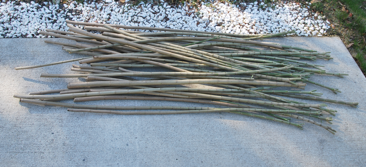 単管で建てた門はきっと味気ないので伐採した幹枝で囲んで自然味な演出してみたい。