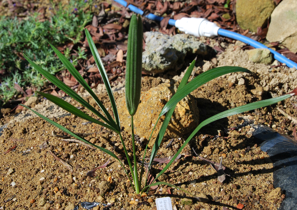比較的耐寒性のあるParajubaea属のなかで唯一、京都では暑すぎるため屋外栽培が不可能でエアコンの効いた室内で過ごした苗です。