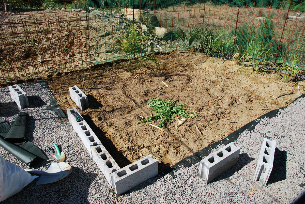 フラットに植えようかとも考えたけど、根を踏んで成長が遅れるかもしれないので花壇にします