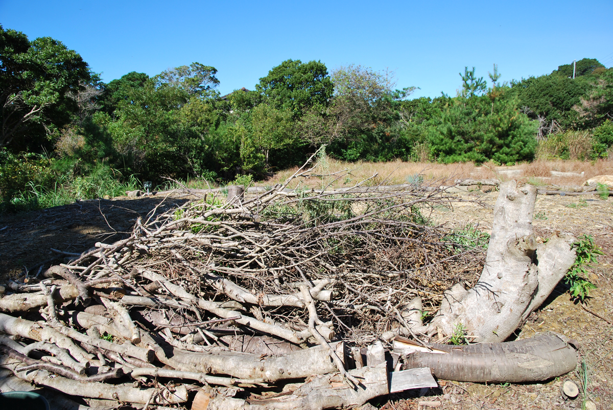 来年はこのあたりがメインになりそう。枝を細かくして埋めて土壌改良に使ったり、たき火の燃料にしたりしよう