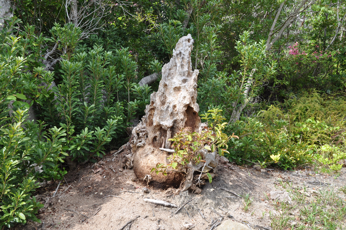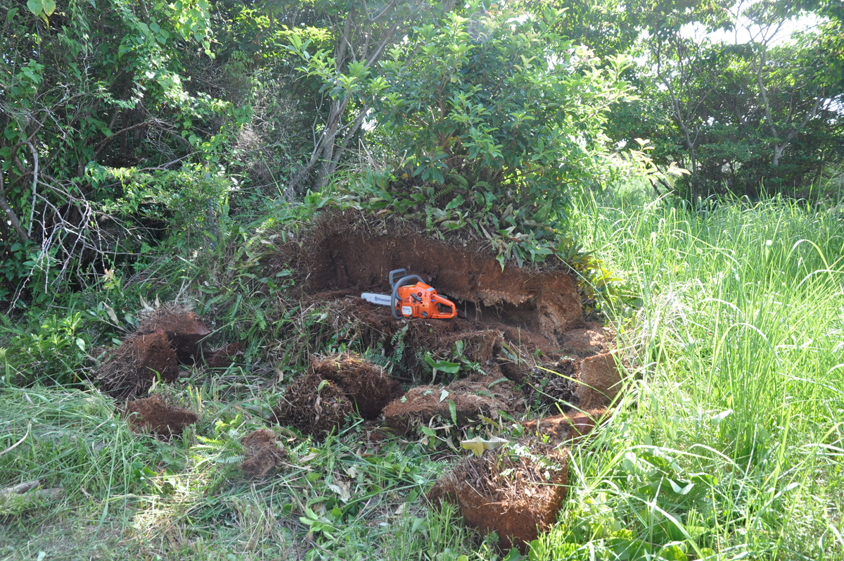 チェーンソーで切断してみるとふかふかで、着生した根を骨格に腐葉土の丘を作っている感じでした