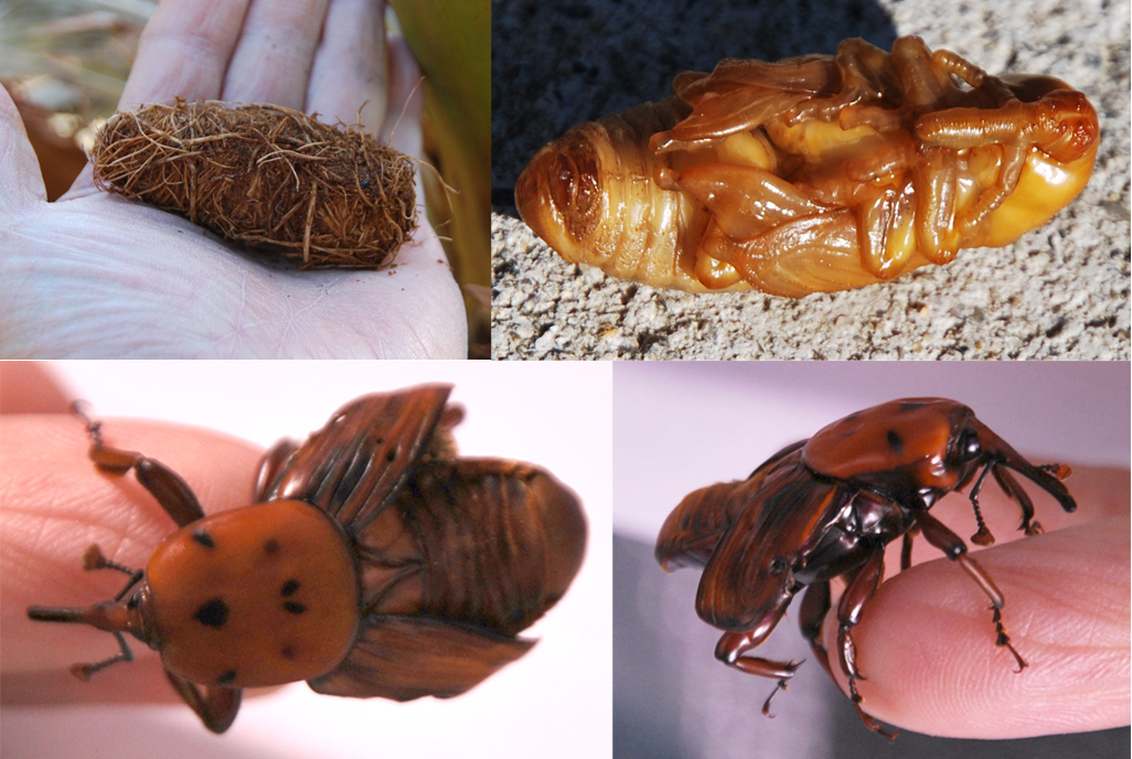 この種は19種以上のヤシを襲うと報告されており、世界最悪の害虫といわれます。