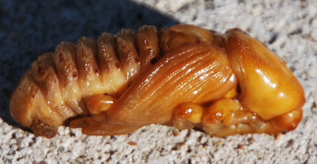 体液の滲みと独特な臭いがあったので、死んでしまったかと思ったらどうやら蛹の殻を破った様子