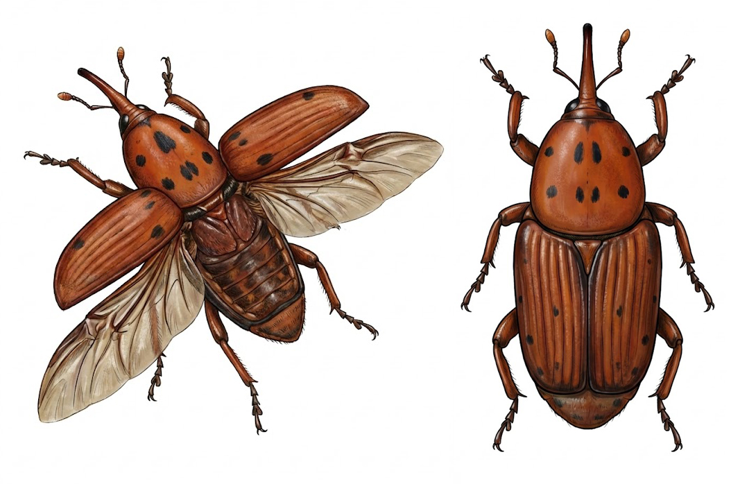 ヤシオオオサゾウムシはココヤシ、ナツメヤシ、アブラヤシなどのヤシ農園における主要な害虫とされています。