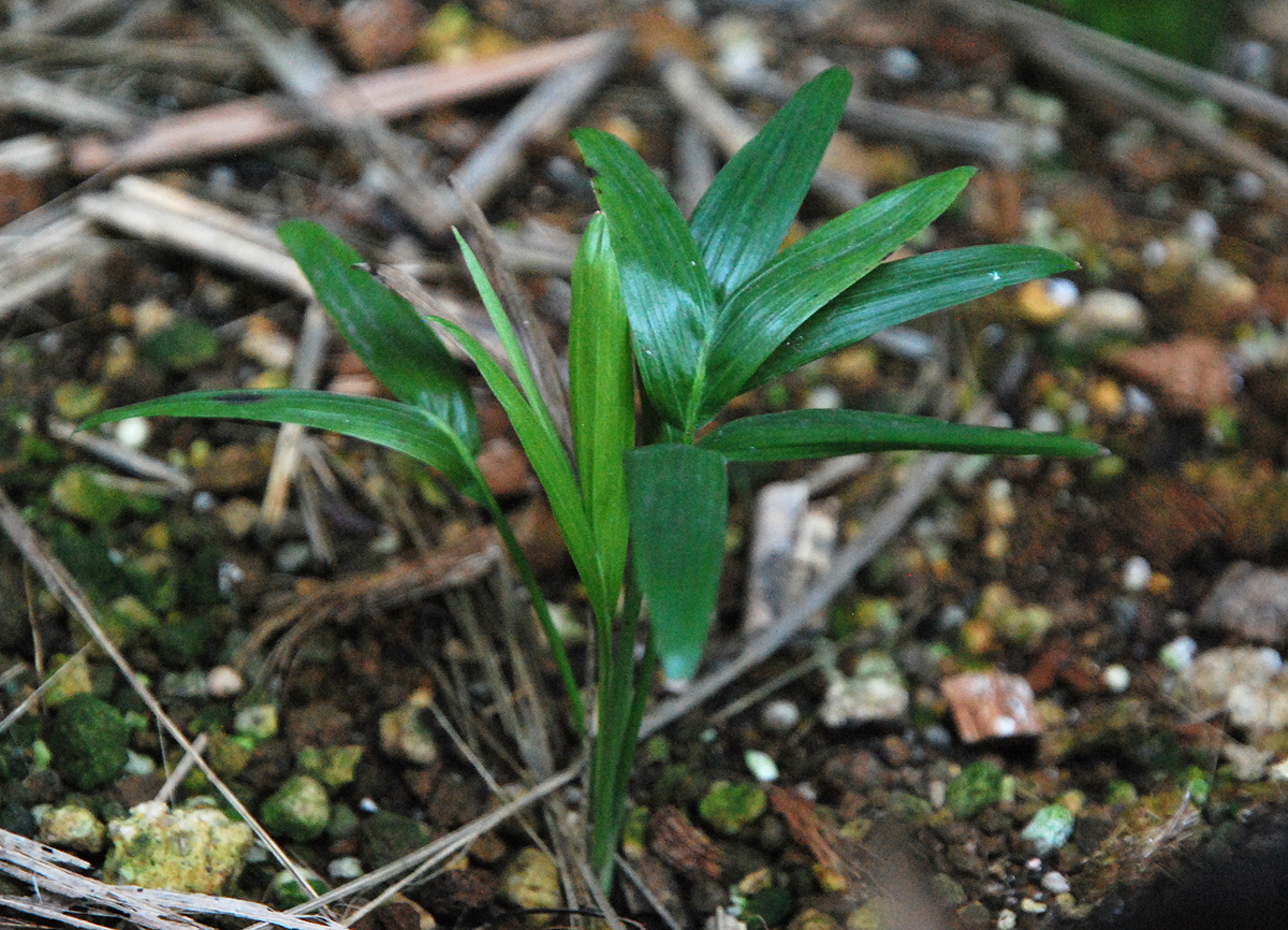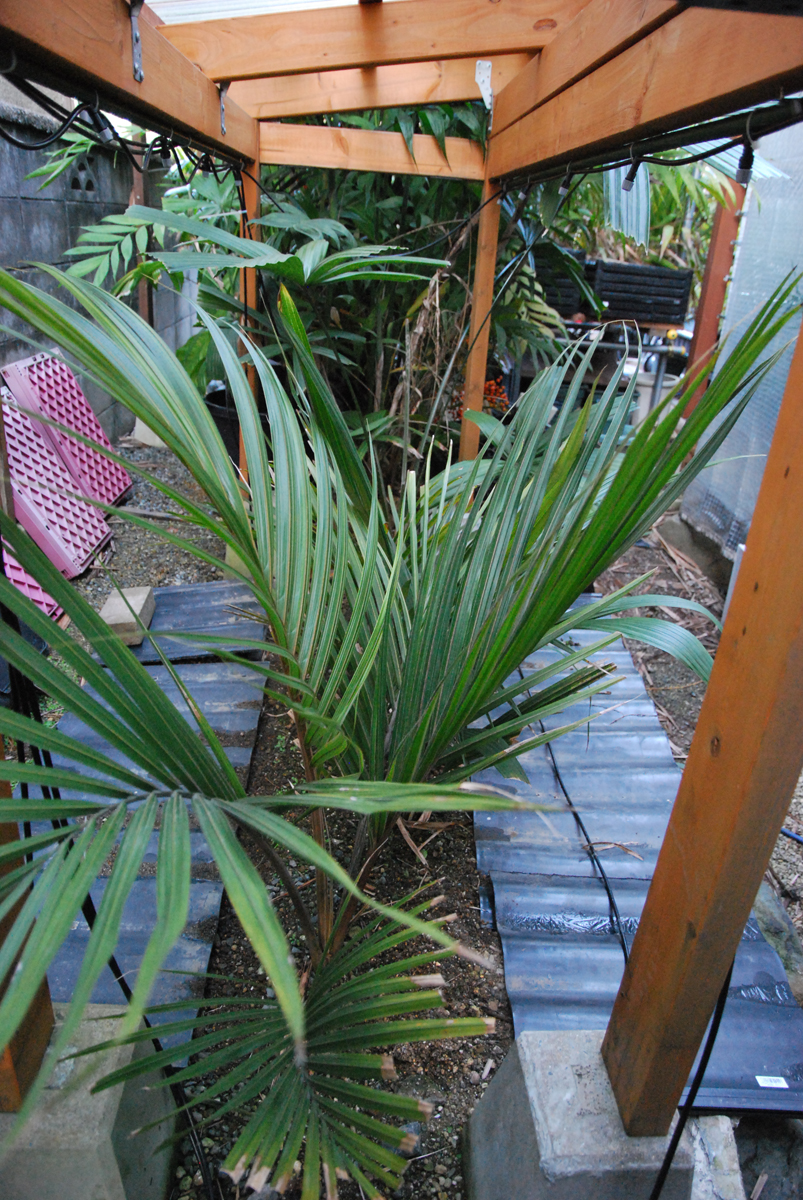 ゾーン10bのチャメドレア テペヒローテ(パカヤパーム)の新芽が少し成長していました