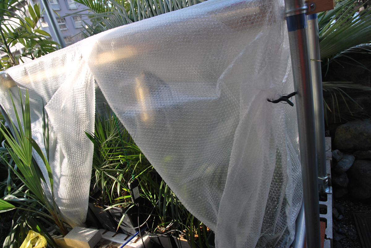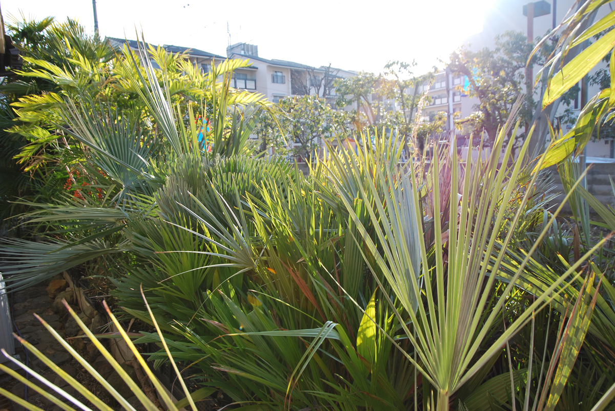 冬の水やりはなるべくヤシの頭上からではなく株元にあげるようにしたいところ