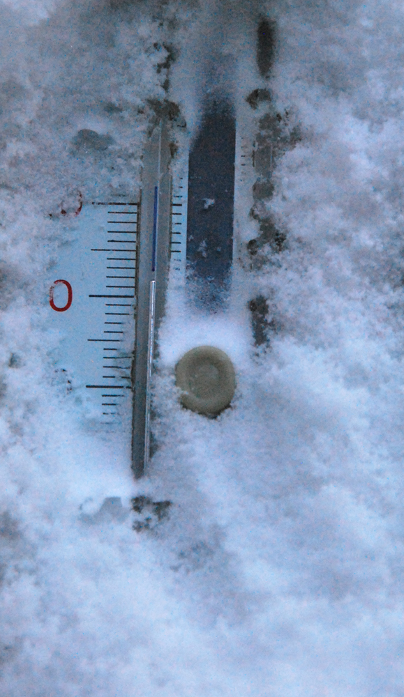 温度計の片面が雪で覆われて放射冷却が抑えられたかも