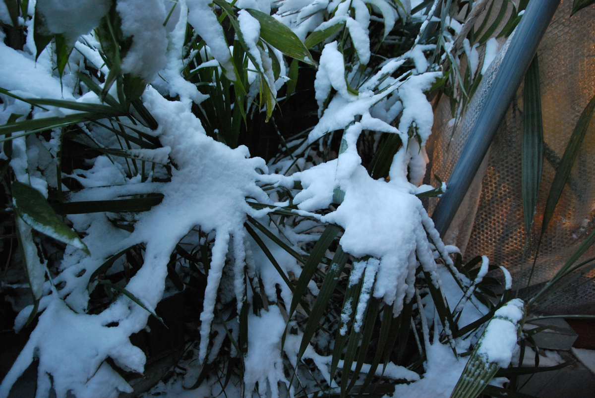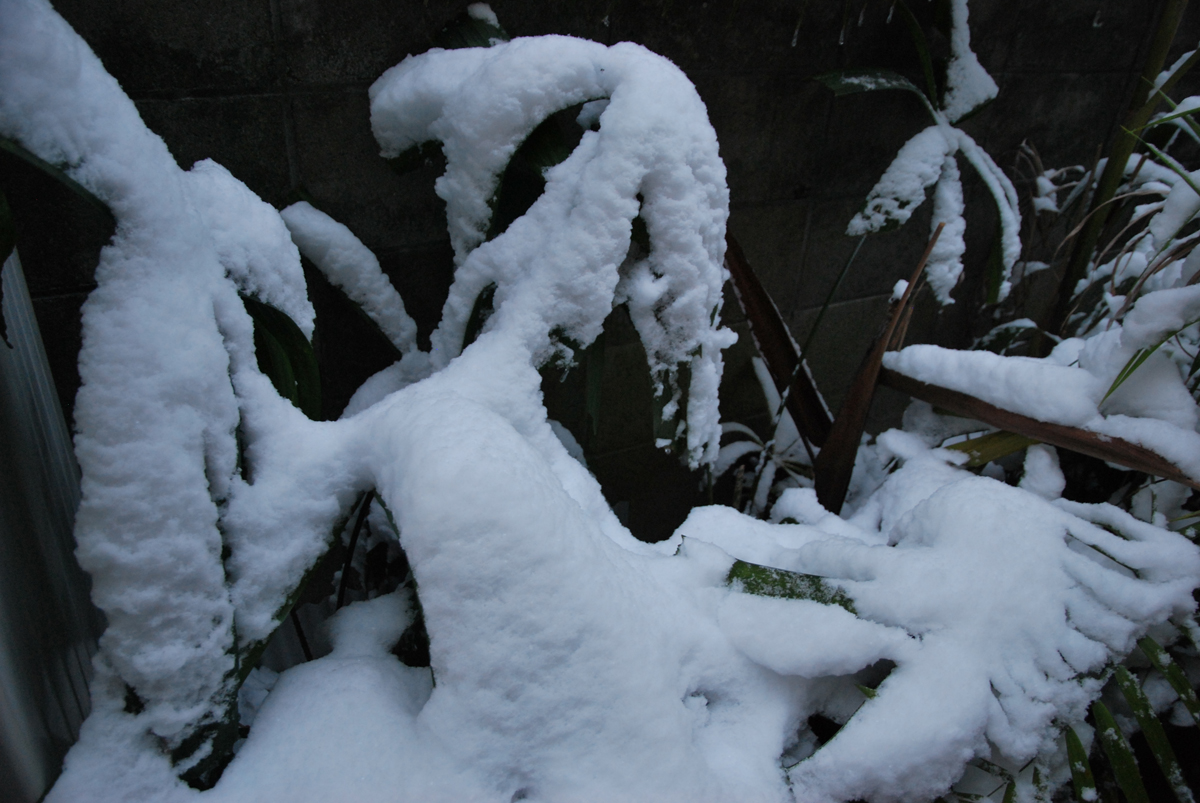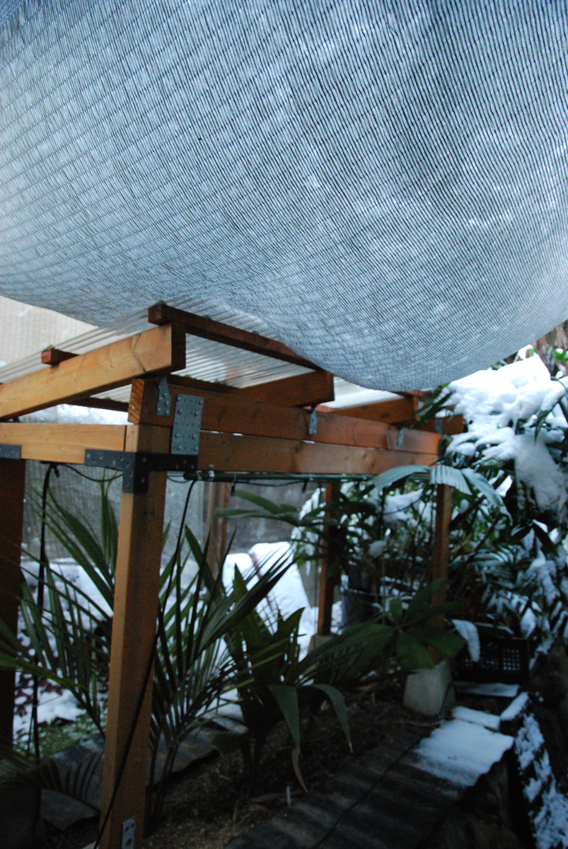 屋根からの落雪に耐えました 下葉は前から折れてたっぽい