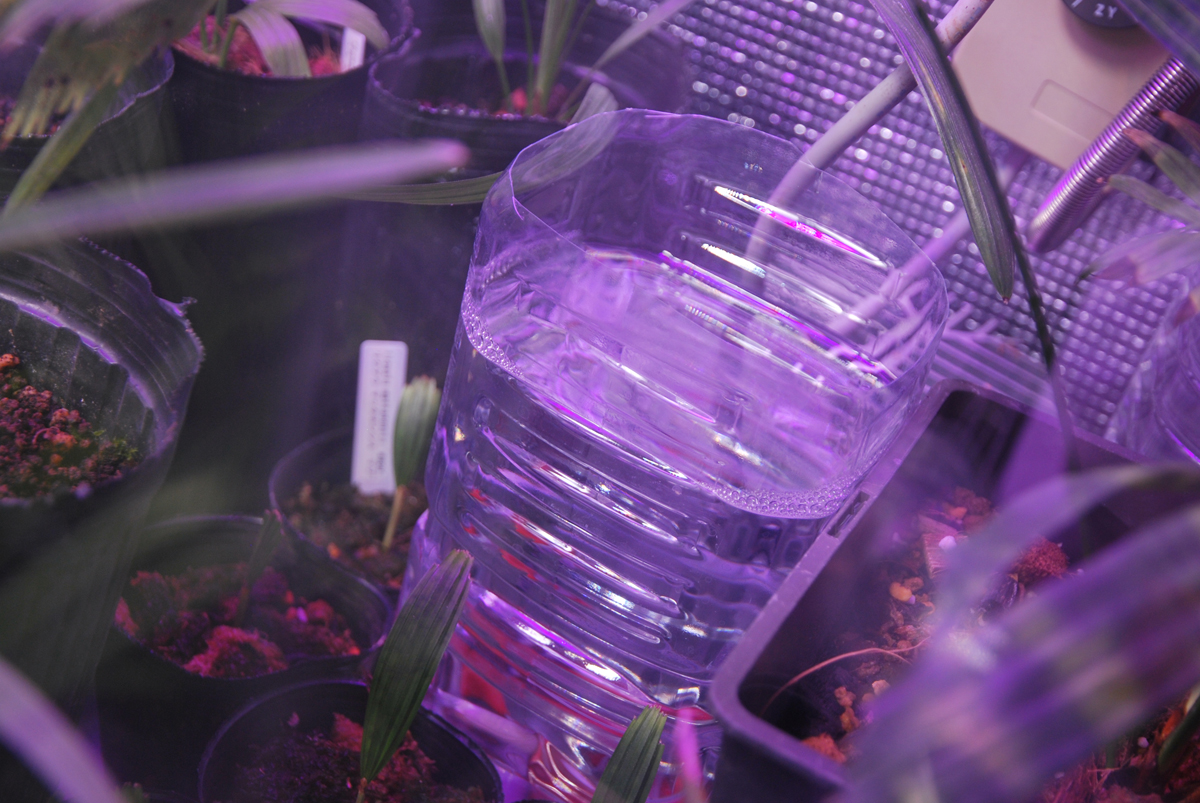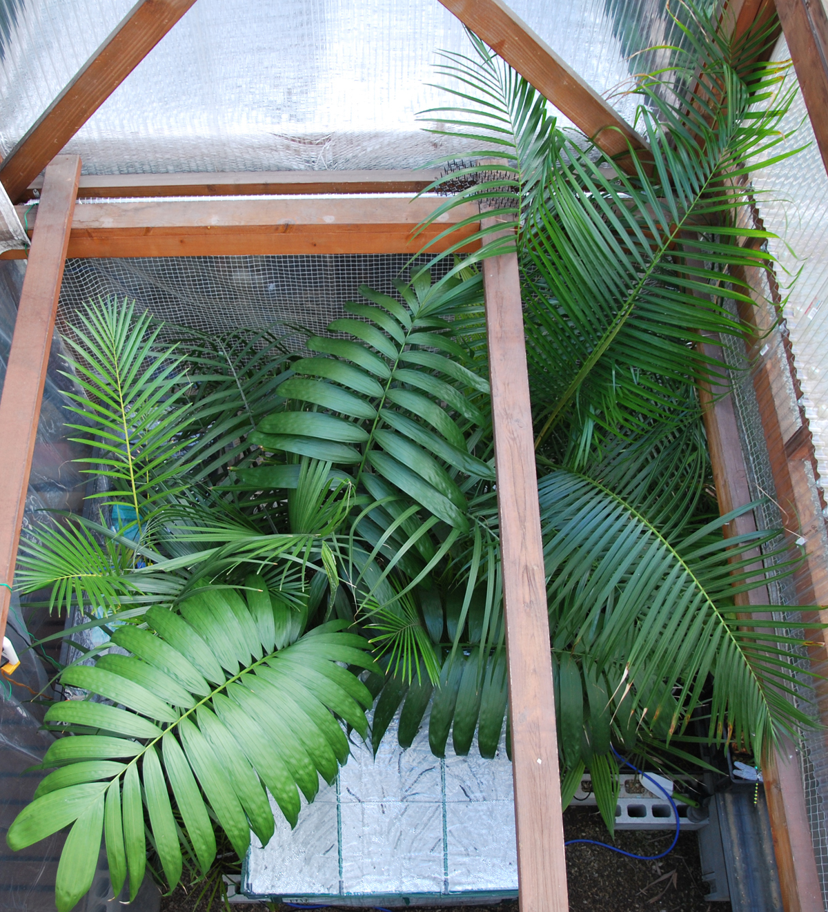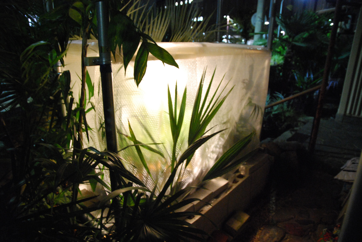![]() I wanted to keep my cold-sensitive Raphia australis warm using halogen lights to help it survive the winter. |