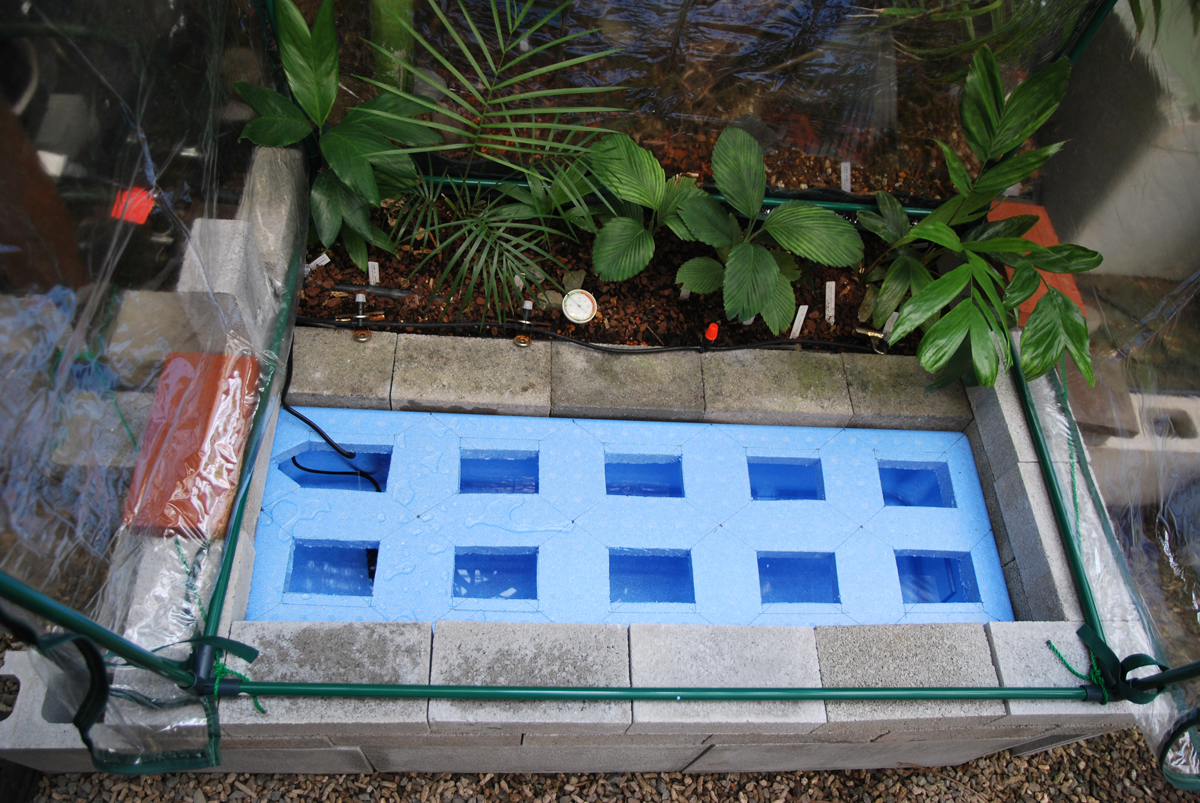 | I surrounded it with concrete blocks and heated it with halogen lights to survive the winter. |