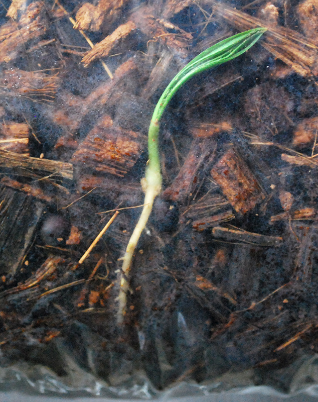 赤玉土で発芽。表面にココチップを敷いて霜対策。