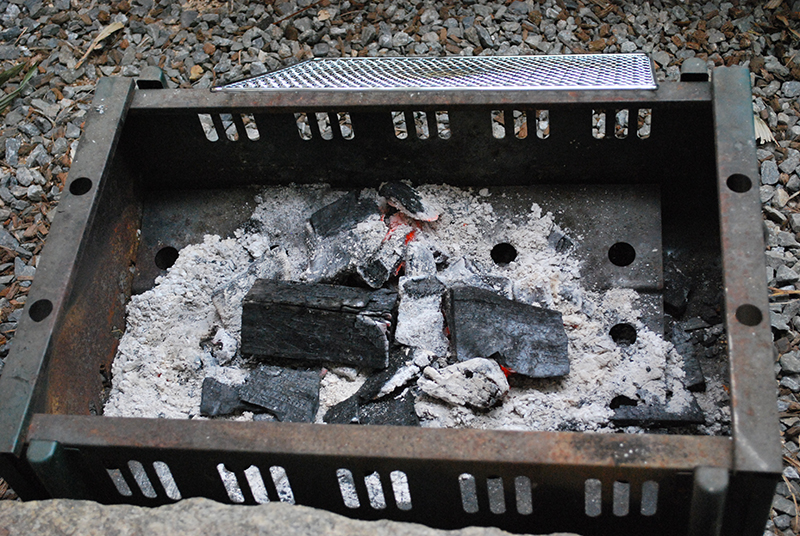 練炭のストックが無くなったので木炭に切り替えてBBQコンロを使用。木炭の匂いに癒されます。