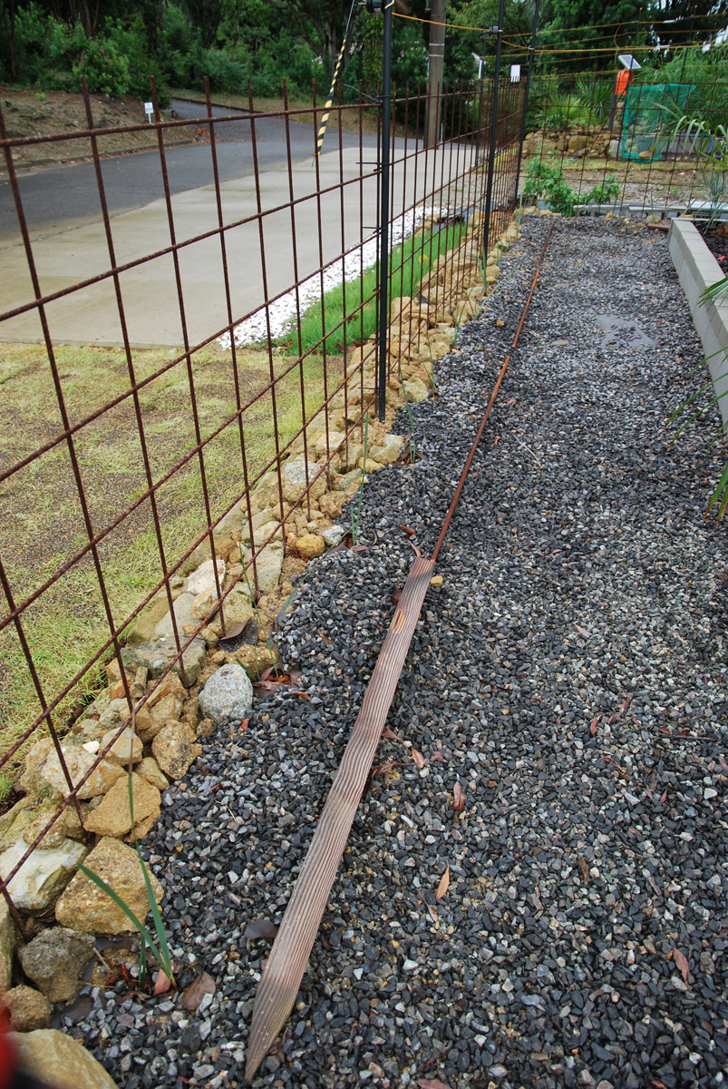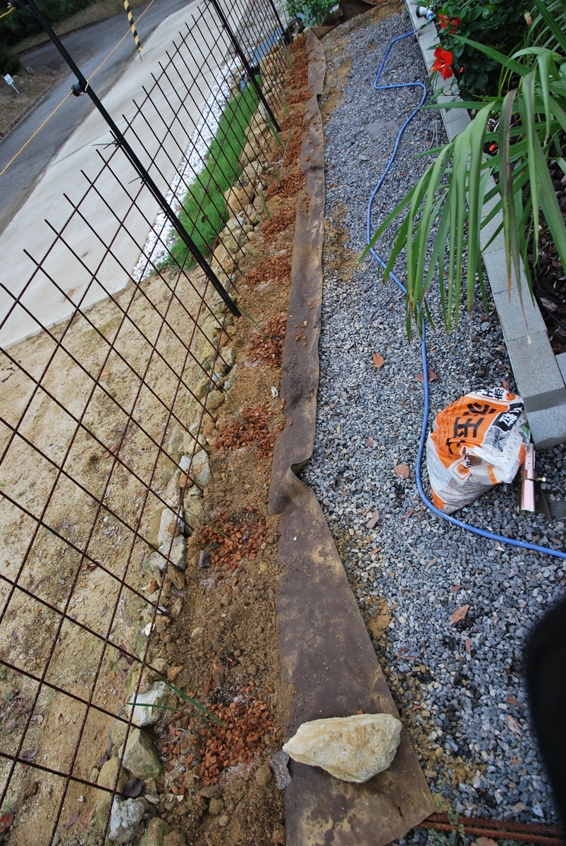 通路のバラスを敷いて作業はここまで。防草シート2x5mでバラス12袋