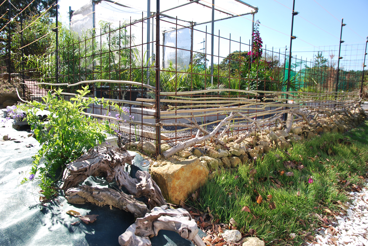 植物を不織布ポット越しに植え、葉を食べられなかった場合は柵の外に植える、食べられた場合はポットを土から出して柵内に避難する
