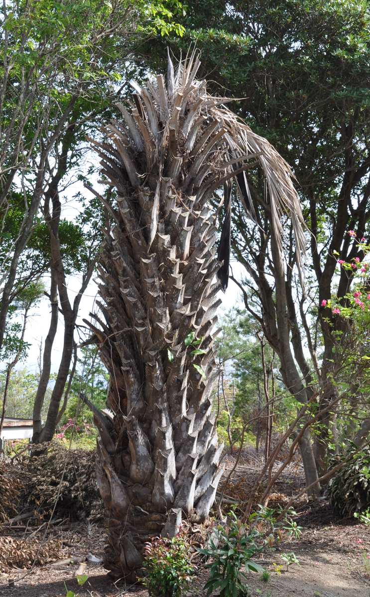 最初に発見されたというココヤシは薄茶色、ビンロウジュなどクラウンシャフトタイプは緑が多いのでカムフラージュ効果はなさそう