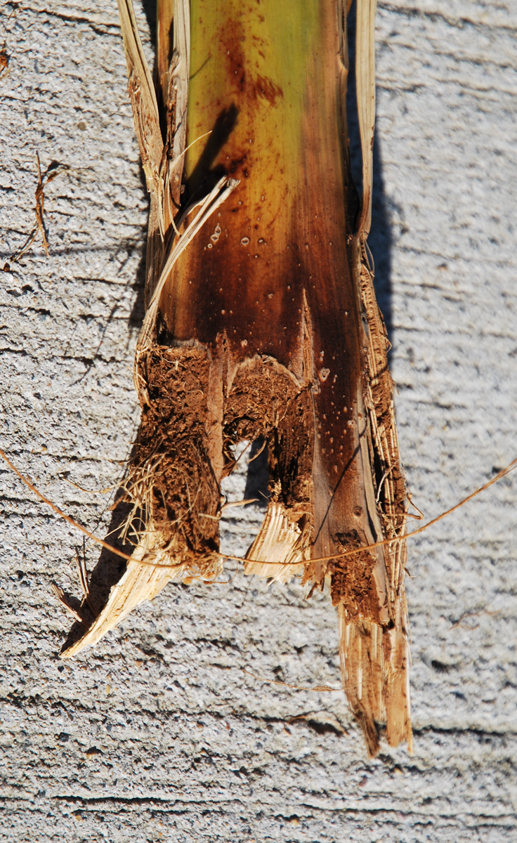 ヤシは「パームハート」と呼ばれる唯一の生長点が侵されると枯死し二度と芽が出ることはありません。