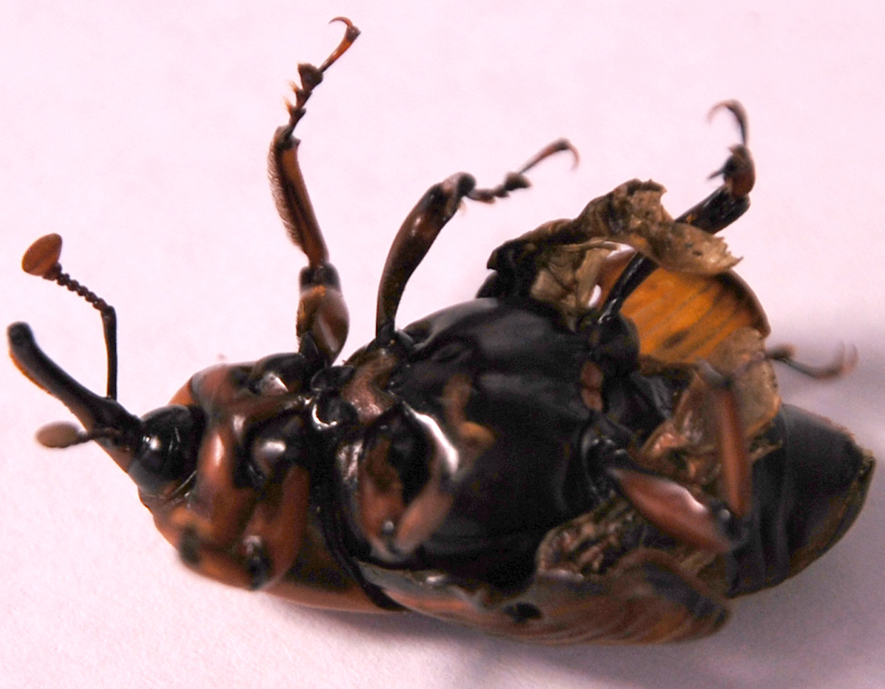 この種は19種以上のヤシを襲うと報告されており、世界最悪の害虫といわれます。