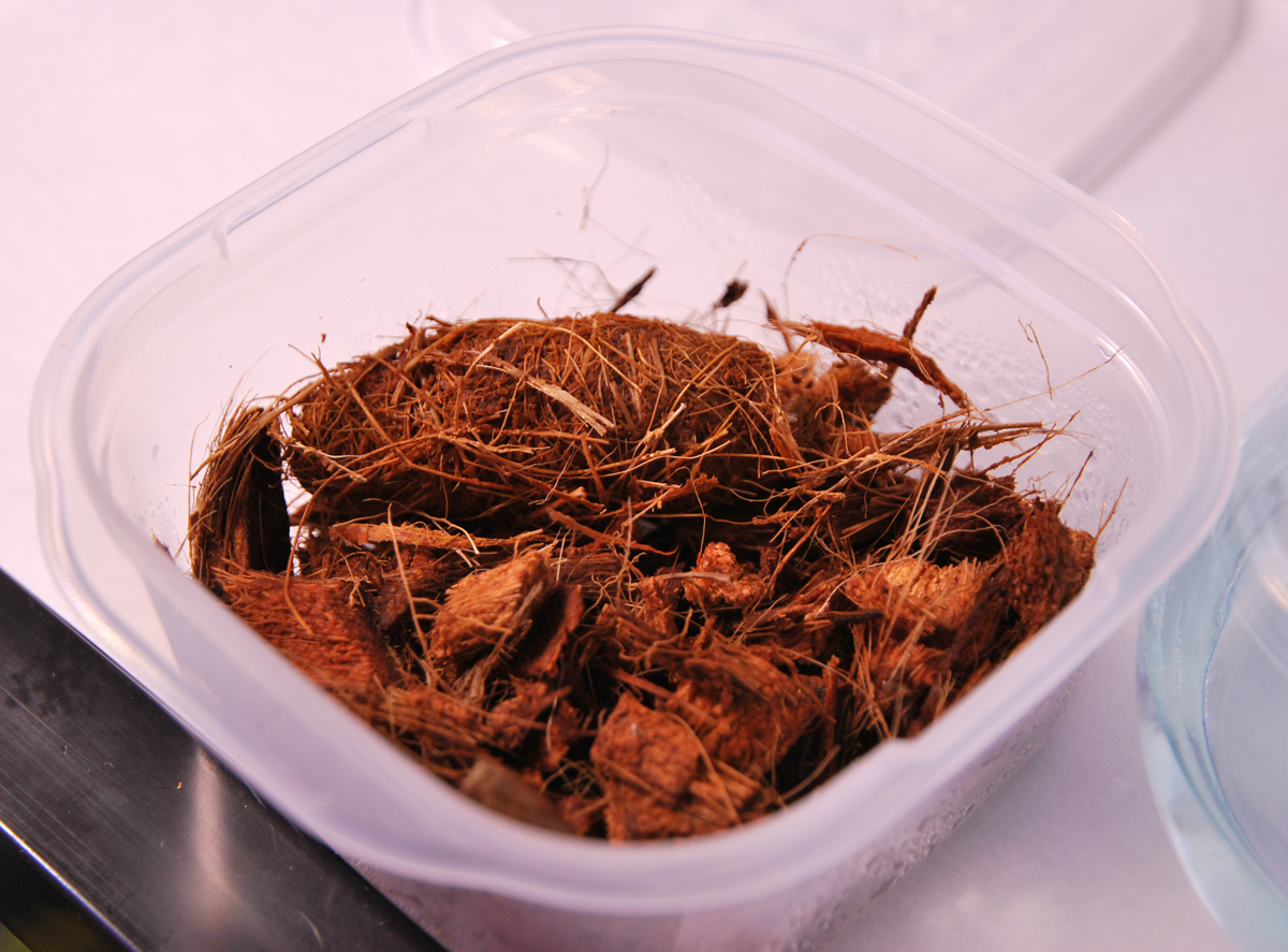 自宅でヤシを越冬させているグロウボックスでタッパーに入れ25℃で管理、約3週間後、